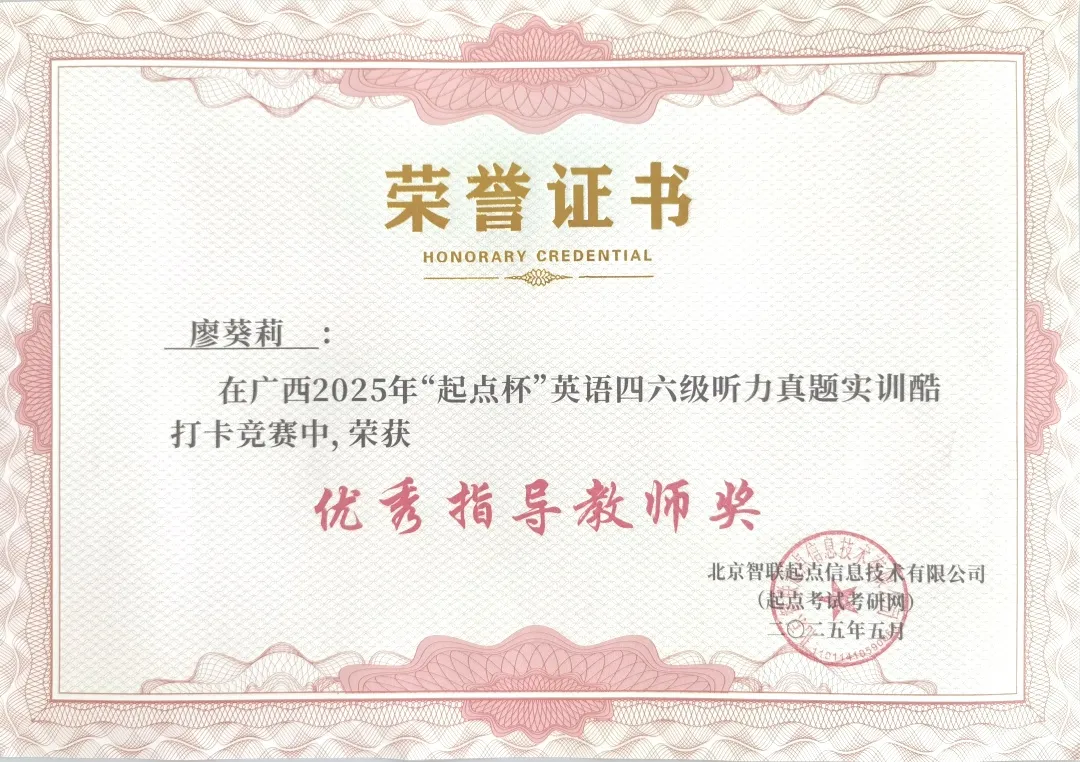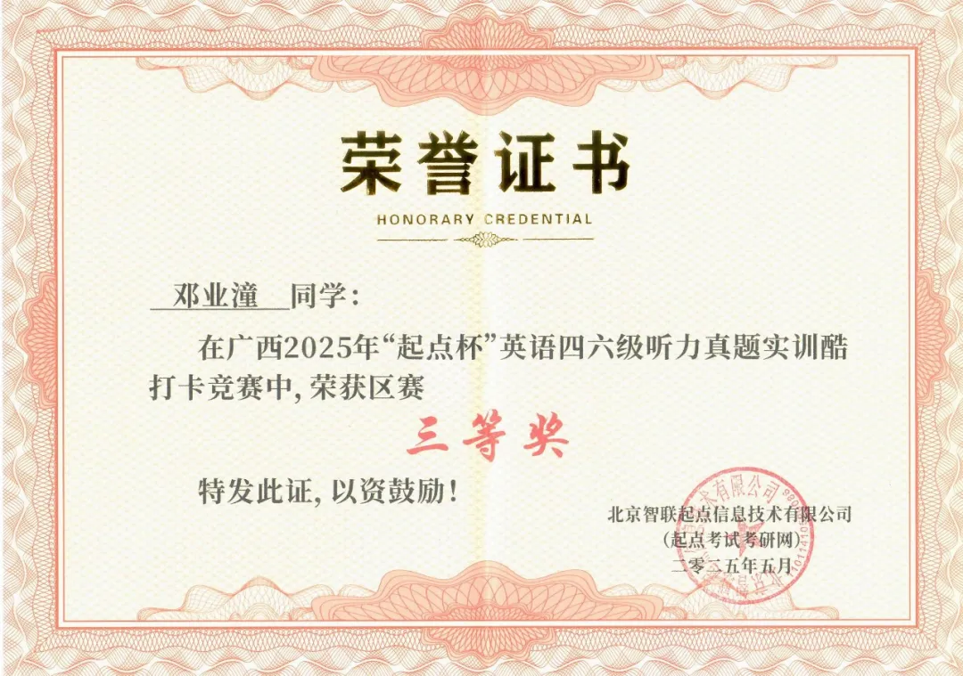 【喜报】我校学子在广西2025年“起点杯”英语四六级听力真题实训酷打卡竞赛中喜获佳绩