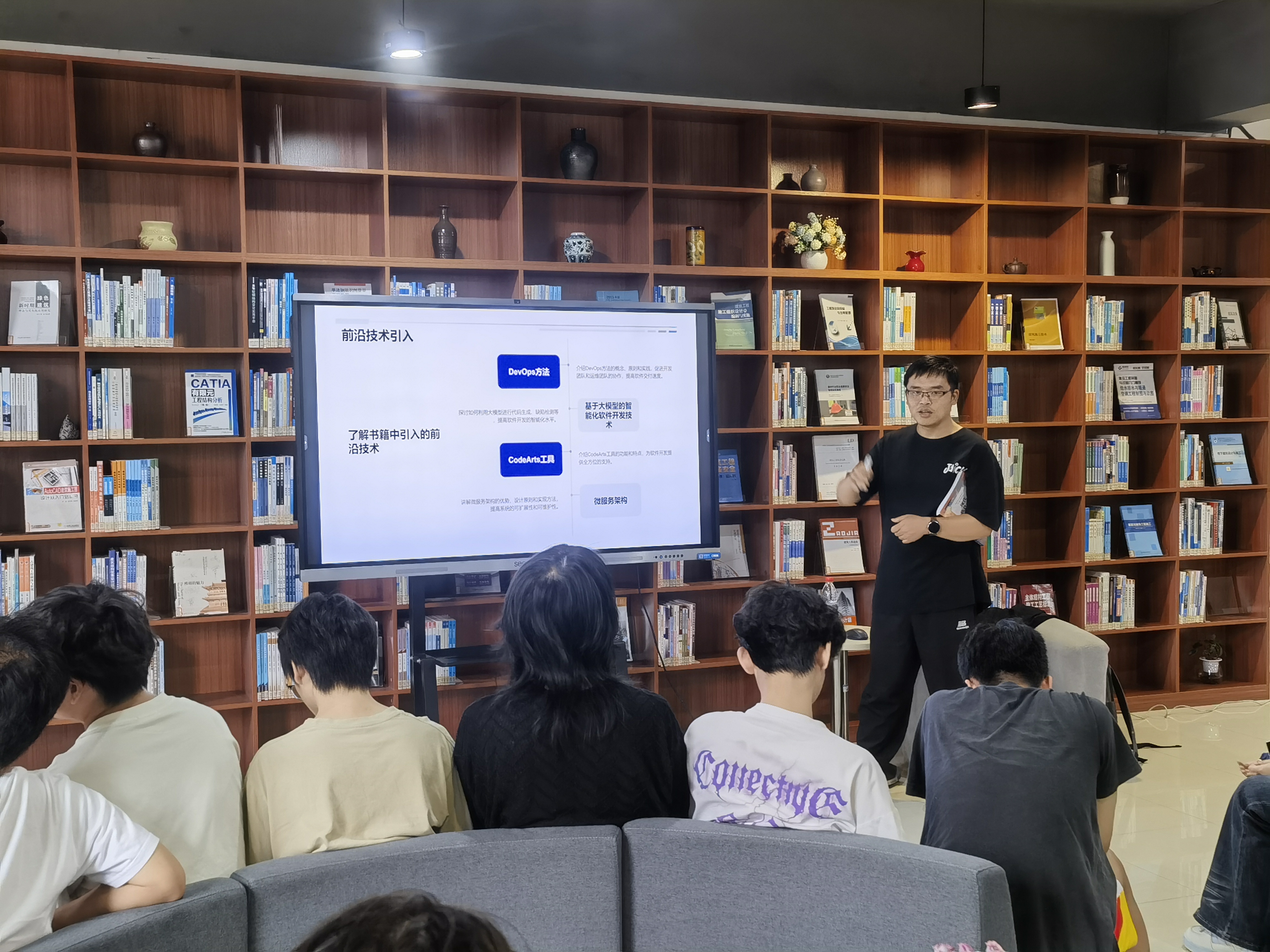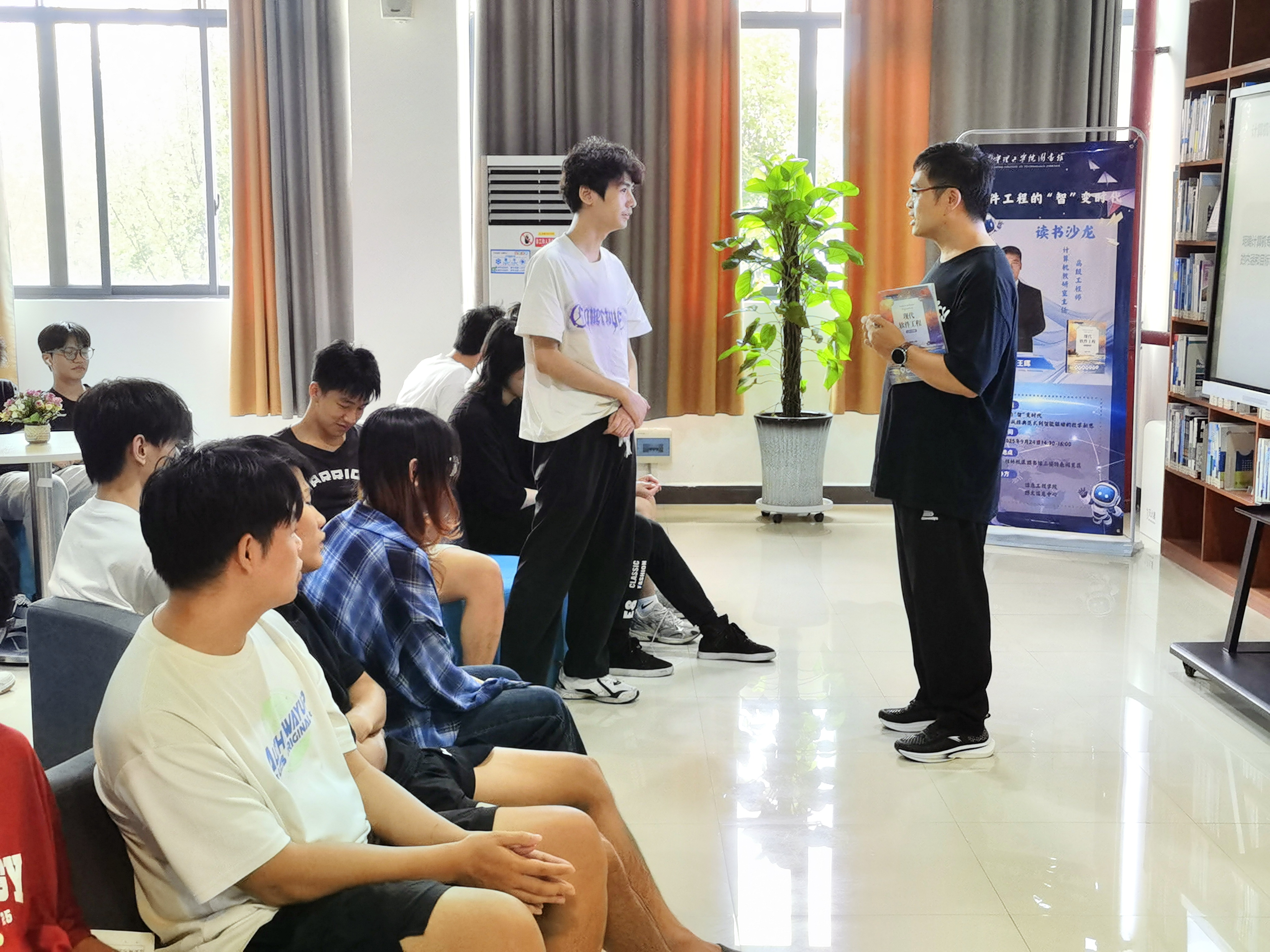 本次沙龙特邀信息工程学院计算机教研室主任、高级工程师王晖老师担任主讲人。王晖老师从事软件开发20余年,拥有深厚的学术背景和丰富的行业经验。在沙龙中,他主要围绕计算机跨学科发展、人工智能、物联网等核心内容,结合典型案例进行了生动讲解,并就《现代软件工程》一书进行好书分享。在互动环节,同学们围绕智能编程工具、软件工程职业发展、课程学习建议等话题与王老师进行了深入交流,现场学术氛围浓厚。图文信息中心为本次活动提供了专业的场地支持和相关图书资源推荐,充分让同学们认识到计算机与各行各业的紧密联系,以及明确自己未来的发展方向。